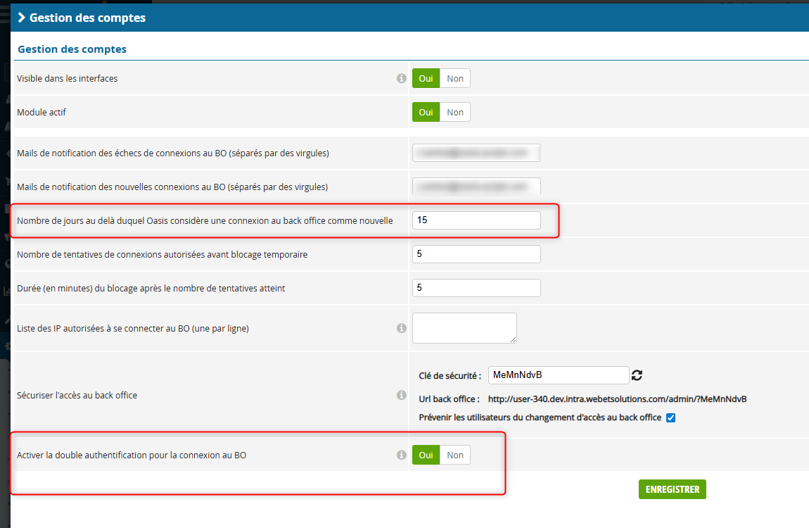 Exemple : Si le paramètre est à 15 jours, toute connexion d'un appareil non utilisé depuis 15 jours déclenchera une notification. Si le paramètre est à 0, un contrôle systématique sera faite par une double authentification.