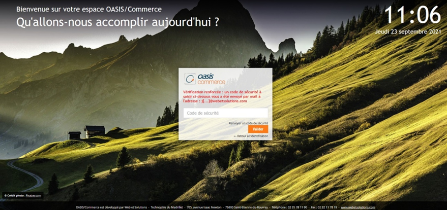 Après la connexion au back office, OASIS va vous demander un code d’authentification.