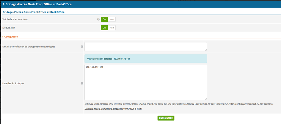 Le bridage d’accès Oasis Front Office et Back Office consiste à limiter ou contrôler les connexions aux interfaces du site (côté client et côté administration) afin de prévenir les abus ou les attaques automatisées.