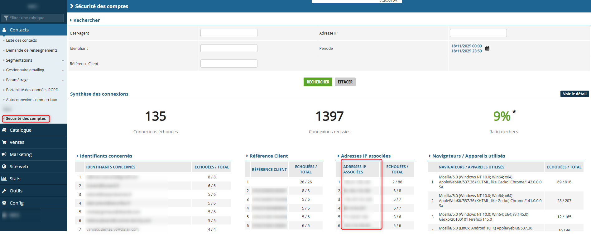 Vous pouvez vous rendre pour dans le menu OASIS : Contacts > Sécurité des comptes pour détecter les IP à bloquer.